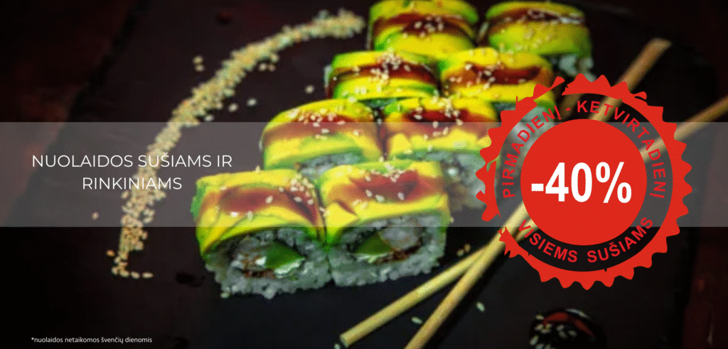 Lašiša, ungurys, kremas, agurkas, tempura.Original price was: €10.90.€6.54Current price is: €6.54. -